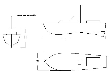 I size each box around a boat - which is hardly surprising! We first take the boat dimensions - Length, Width and Height (counting Height as from the tip of the propeller to the highest part of the superstructure).